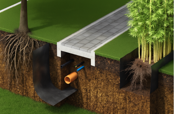 Acting as an impermeable shield, RootGuard effectively controls aggressive root growth around buildings, pathways, drainage systems, retaining walls, and irrigation networks, ensuring structural integrity and long-lasting landscape protection. Its flexibility and easy installation make it an ideal choice for residential, commercial, and infrastructure applications.